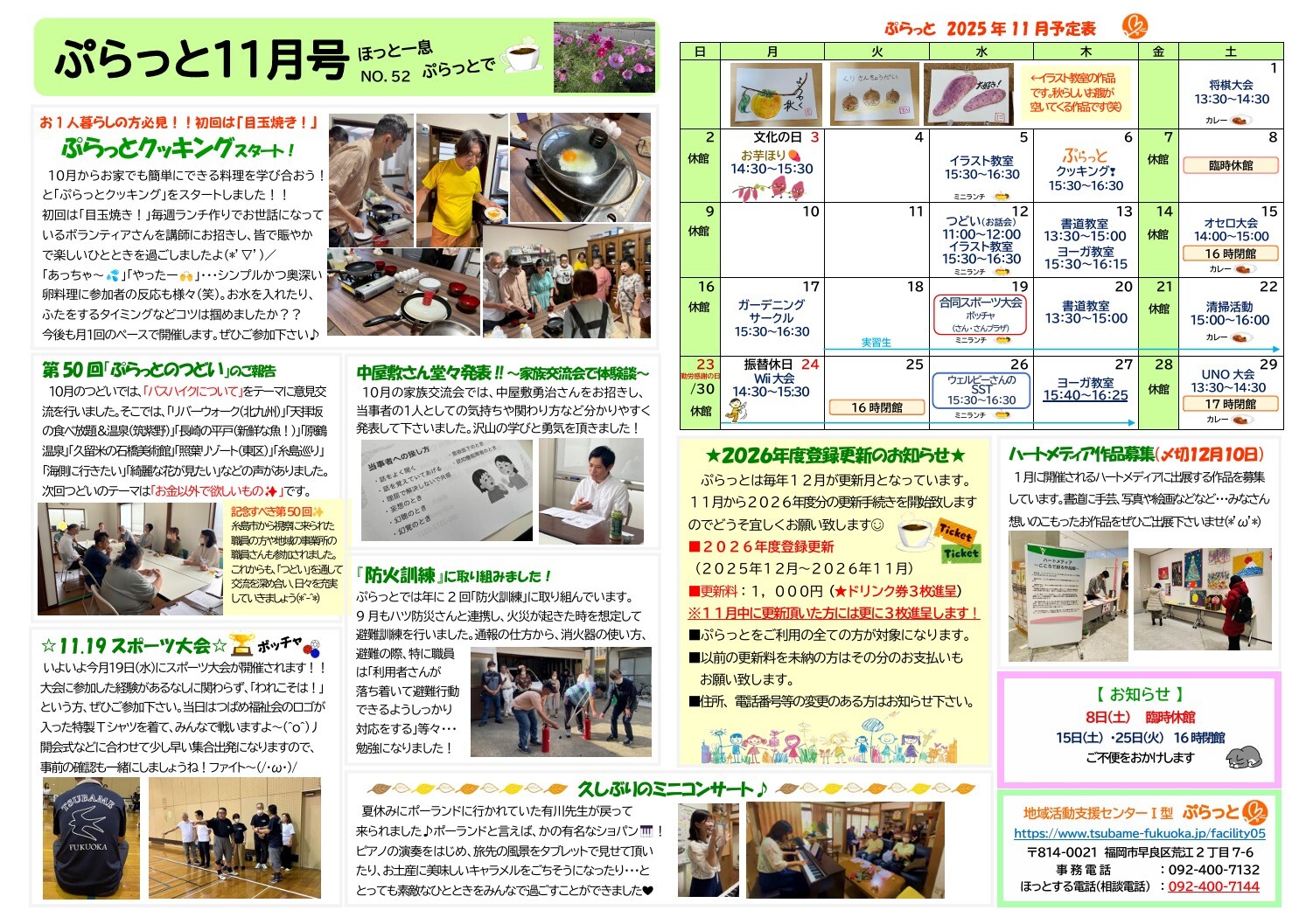 | TEL | 事務電話:092-400-7132 ほっとする電話:092-400-7144(12:00~15:00) |